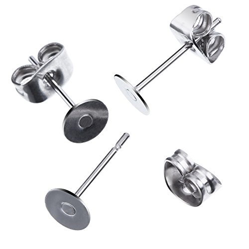 200 Piezas (100 Pares) Postes de Pendientes de Acero Inoxidable Almohadilla Plana con Tuercas de Pendientes de Mariposa para Accesorios de Fabricación de Pendiente (Plateado)