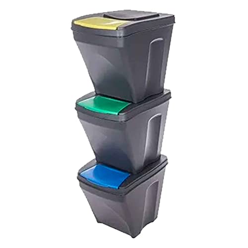 Acan Tradineur – Set de 3 Cubos de plástico para el reciclaje. – Contenedor para el hogar, trabajo, clases, etc. – Cubo de plástico para el almacenaje. – Capacidad de 25 L.