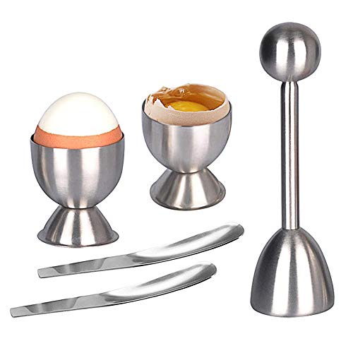 【MATERIAL】: El conjunto de huevo Cracker Topper está obra de hoja inoxidable de alta calidad.Incluye los elementos necesarios (1 huevo Topper,2 cucharas de huevo y 2 hueveras) para sus huevos duros o blandos favoritos
