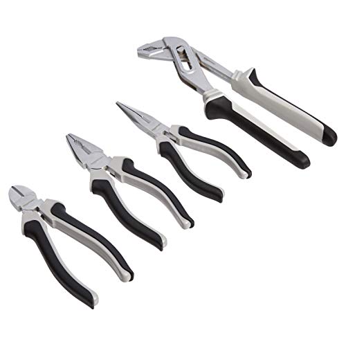 El juego incluye: unos alicates diagonales de 150 mm, unos alicates universales de 150 mm, unos alicates universal de tipo largo de 150 mm y unos alictes extensibles de 250 mm
