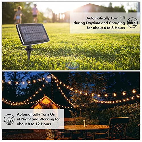 ✨ 【Cadena de luces solares para exteriores】 La longitud total de la cadena de luces solares para exteriores es de 7.35 m, con 12 + 1 bombillas LED. Las luces solares de exterior son perfectas para colgar en jardines o patios, habitaciones, comedores, vallas, sombrillas. Disfrute de una barbacoa o cena inolvidable con familiares y amigos bajo luces relajantes.