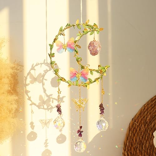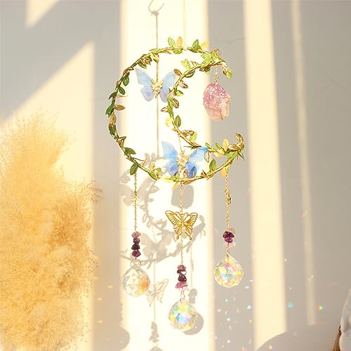 🌈【Multi-elemento】El bello atrapasol contiene amatista, luna, hojas, estrellas y mariposas. Los distintos elementos se realzan mutuamente, refractan hermosas sombras y zona de influencia y embellecen el entorno con una belleza extraordinaria.