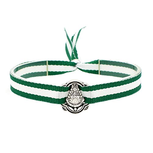 BDM Pulsera para Hombre y Mujer de Tela andaluza con la Medalla de la Virgen del Rocío y la Bandera de Andalucía.