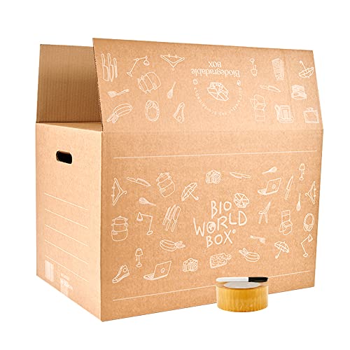 BIOWORLDBOX Pack 10 cajas 600x400x400mm con asas para mudanza ultrarresistentes- Fabricadas en España- Biodegradables y ecológicas