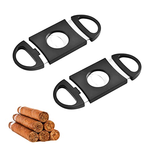 Cortador de Puros,Cortador de Puros de Acero Inoxidable,Cortador de Cigarros,Doble Hoja Bolsillo Cigar Cutter Acero,Herramienta para Cortar Puros,para Mayoría del Tamaño de Cigarros,2PC (Negro)
