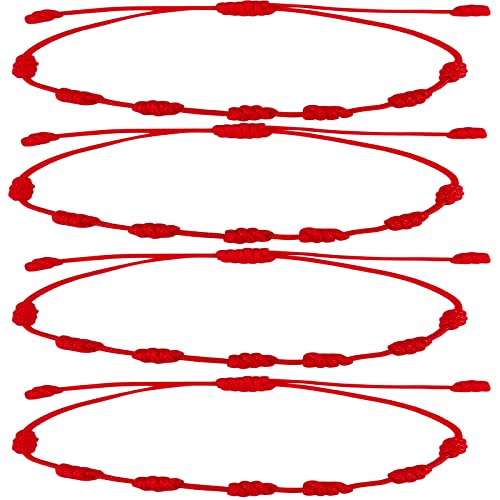 cotigo Pulsera 7 Nudos Roja con Amuleto en Acero-Suerte y Proteccion-Pulsera Mal de Ojo para Parejas y Amistad-Bisutería Ajustable-Pulsera Hilo Rojo para Mujer y Hombre