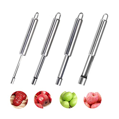 🌮 【Herramienta de expulsión de frutas】: 4 piezas de removedor de semillas descorazonadoras están diseñadas con una acero dentada y en espiral, el núcleo de arma blanca inoxidable puede quitar las semillas fácilmente y consentir una cáscara llena de pimiento, calabacín. Y simplemente rellénalos con salchichas, carne picada o queso. Herramienta para descorazonar verduras
