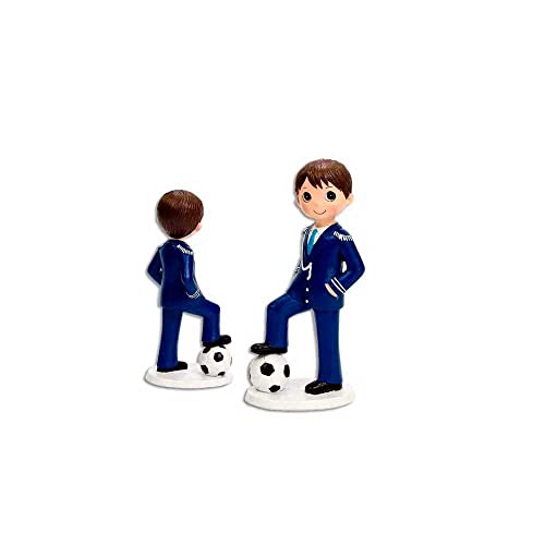 Foráneo encarnación de bollo de Primera Comunión de un bebé con vestido de Almirante, controlando un cosmos de fútbol. Perfecta para asear el pastel o para regalar como castro de la Primera Comunión.