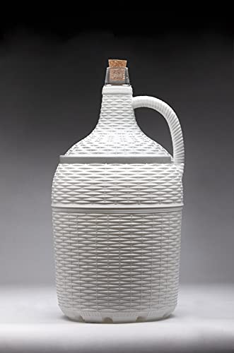 Garrafa o garrafón de 5 litros de cristal con asa, forrado de plástico blanco, incluye corcho