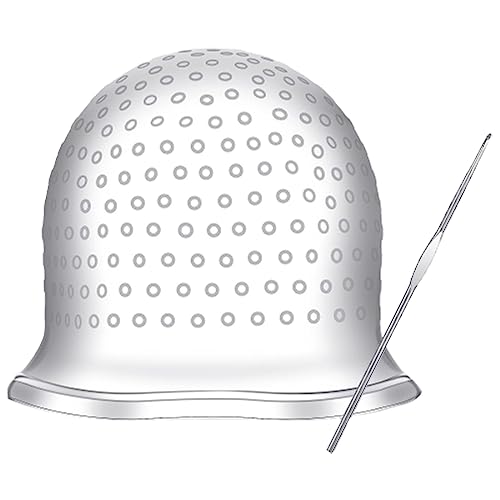 ♣ Fácil de usar: recibirás 1 tapa de resaltador y 1 pestillo de metal. Los gorros de silicona para teñir el cabello son muy fáciles de usar: ponte el Gorro de Mechas Reutilizable en la defensor, usa el pestillo para llevar a cabo los agujeros que más te gusten, retira el cabello con el pestillo metálico y ya estás lista para empezar a teñir el cabello.