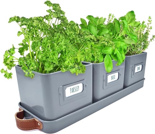Green Thumbz Macetas Decorativas Interior con Macetero Rectangular con Mangos de Cuero – Macetas y Jardinera Rectangular Ideales para Plantas de Interior