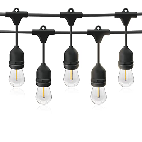 [Dimensiones y Características]: Longitud de cadena: 50m, Negro, Clase de eficiencia energética: A, Número de portalámparas: 50 (lámparas no incluidas), E27 IP54, Enchufe Shuko, Alimentación: 240 V AC, Conectores estancos: IP65.La bombilla de recambio correspondiente se puede encontrar en Amazon: B09WVHJJJP