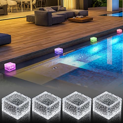 Herefun Luz Solar Exterior, 4 Pack Luces Solares Jardín, Impermeable Auto ON/OFF Luces Deck Solares Exterior, Luces Solares Led Exterior Jardin para Césped Terraza Escalera Patio