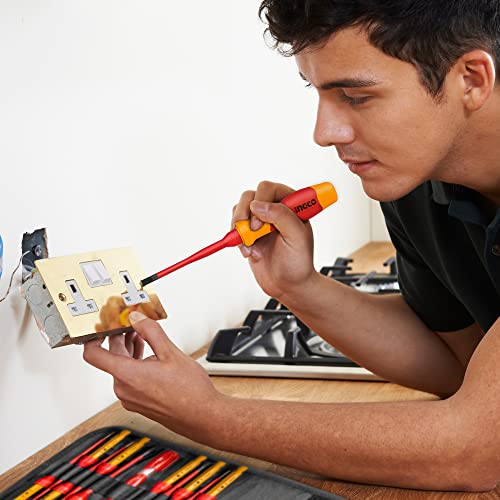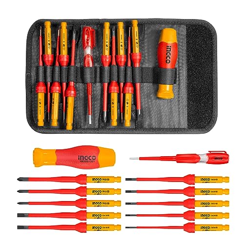 INGCO 1000V Electricista 12 Piezas Juego de Destornilladores Aislados Aislamiento hasta VDE/GS, Juego de Herramientas(HKISD1201)