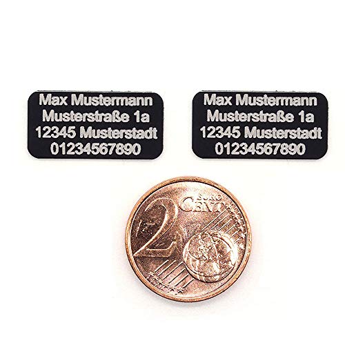 El juego de 2 placas para drones de 20 x 10 mm es extremadamente enano. La matrícula para dron se suministra en negro. La escritura se graba en un tono plateado.
