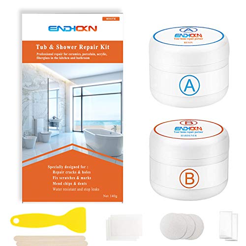3. Kit de Reparación de Bañera de Acrílico–Nuestro kit de reparación de porcelana contiene dos componentes del apoderado de reparación de bañera A y B de gran espaciosidad y adhesión calidad, los pasos de reparación son simples y se secan rápidamente. Utilice nuestro kit de reparación de baldosas y bañeras para darle un brillo enclenque después de la reparación.