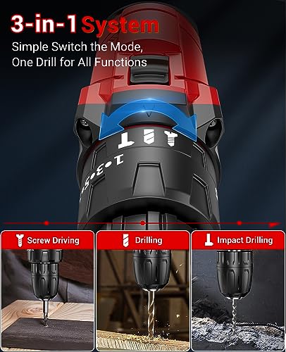 【Taladro Percutor con Sistema 3 en 1 y Torque de 42N.m】 El atornillador electrico KUZUPRO tiene 3 modos de trabajo: atornillar, taladrar y taladrar con percusión. La gala de martillo, que puede crecer considerablemente la eficiencia de su trabajo. Con un par máximo de 42 N.m, el taladro combinado puede alegrar fácilmente una amplia gama de necesidades de perforación y atornillado en madera, metal y plástico.