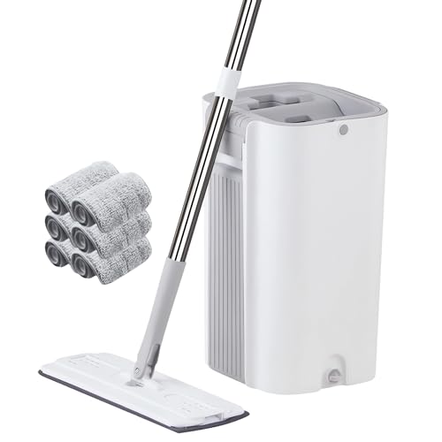 Mopa con Cubo Escurridor Automática Mop Trapeadora Fregona Plana con 6 Almohadillas Microfibra para Limpieza Suelos Madera Parquet Azulejos Ventanas