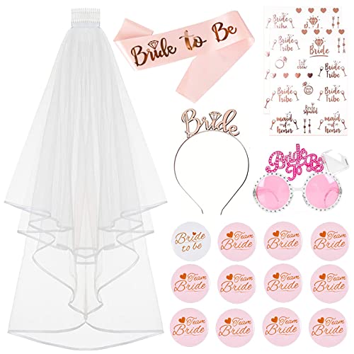 【Despedida de Soltera Accesorios】obtendrá 18 piezas de Bride to Be Decoracion, incluye 1 Bride to Be Faja Banda +1 Gafas rosas+ 1 Bride to Be Velo de Novia + 1 Bride to Be Diadema Tiara + 12 Insignias de despedida de soltera + 2 espada de despedida de soltera tatuagens, nuestra Despedida de Soltera Accesorios será vístete bellamente y dale una despedida de soltera inolvidable o un día de boda, despedidas de soltera !