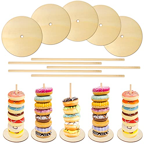 Sólido y sencillo: 5 soportes de exhibición de donas de madera de aproximadamente 11.8 pulgadas, ajustado para aproximadamente 6 – 8 donas.