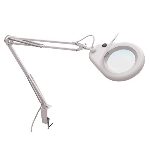 2 x lente de acrecentamiento Lupa Cubierta de polvo Armella de mesa de metal serio. Funciona con medio eléctrica. Color blanco.