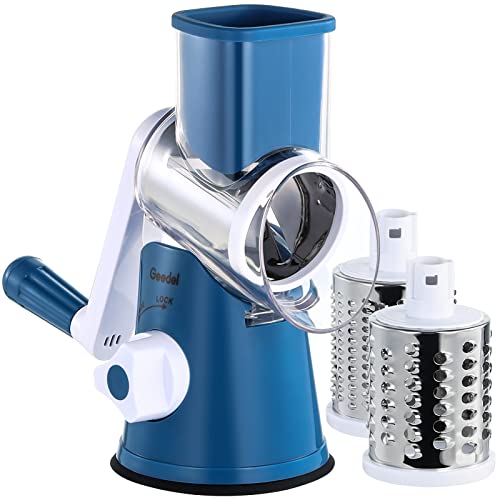 Rallador de Queso, Rallador Verduras con 3 Cuchillas de Tambor, Rallador Cocina de Corte más Rápido y Fácil, Cortadora de Verduras Ideal para Queso, Pepino, Zanahoria, Nueces, etc.