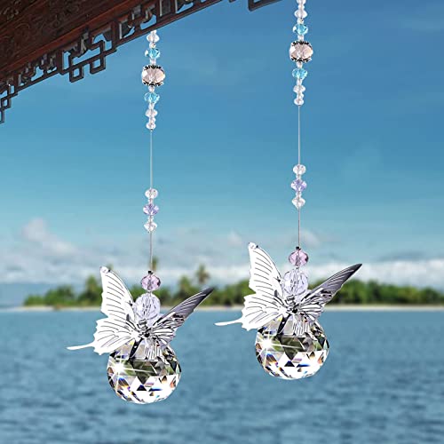 【Multifuncional】 Puede usar estas exquisitas formas de mariposa de prisma de cristal en interiores y exteriores. Puede colgarlos en cortinas, candelabros, ventanas, paredes, plantas o automóviles.