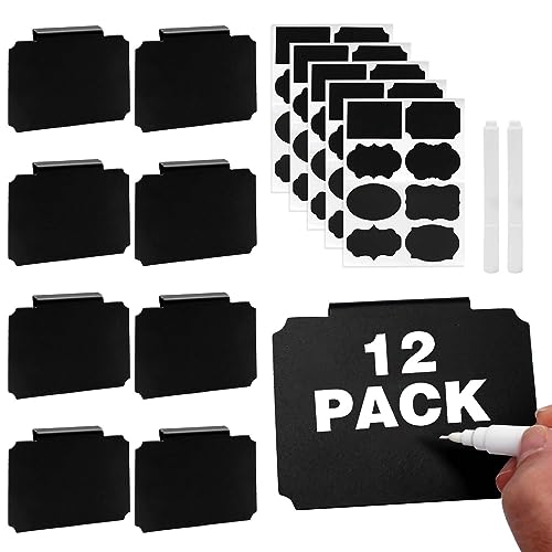 【Kit incluido】 12 mini pizarras + 2 rotulador de tiza líquida punta fina+ 5 pegatinas gráficas negras.