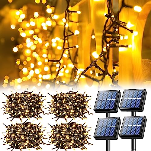 【4 juegos de 100 LEDs 10M solar luces de cadena】Cada juego contiene 4 cadenas de luces, cada una de 10M de largo, con 100 LEDs. Viene con un cable de extensión extra de 2M para que puedas colocar los paneles solares en un lugar adecuado. Por supuesto, puedes juntarlos o utilizarlos por separado.